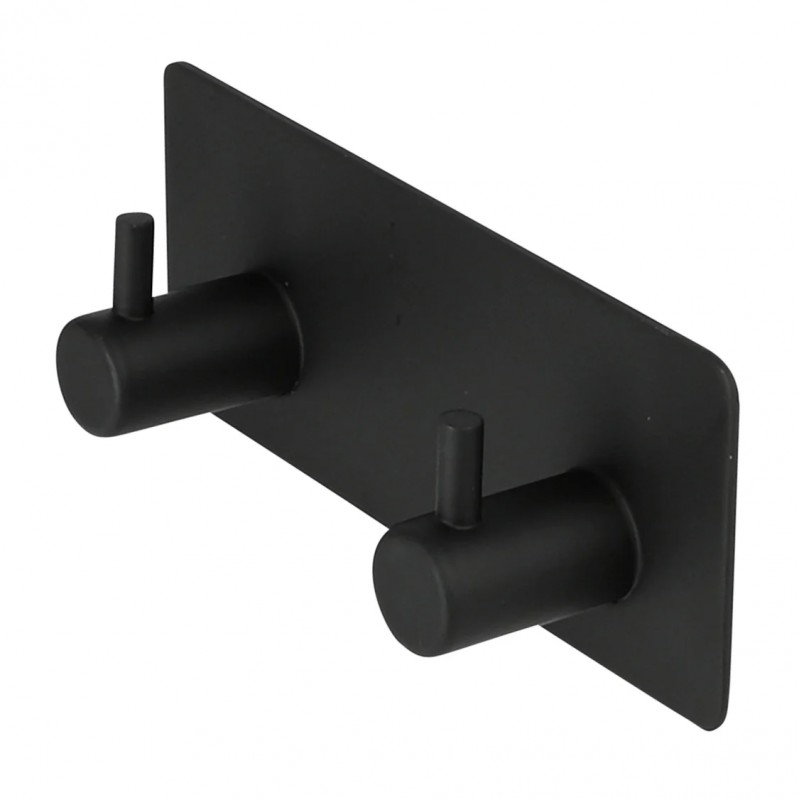 Gancho autoadhesivo doble de metal Dimensiones: 11,5 x 4,5 x 3 cm Color: negro