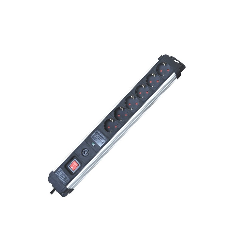 REGLETA INDUSTRIAL 6 TOMAS 1.5 METROS 3X1.5mm² MULTI-PROTEK INTERRUPTOR CON PROTECCION SOBRETENSION + SOBRECALENTAMIENTO SILVER