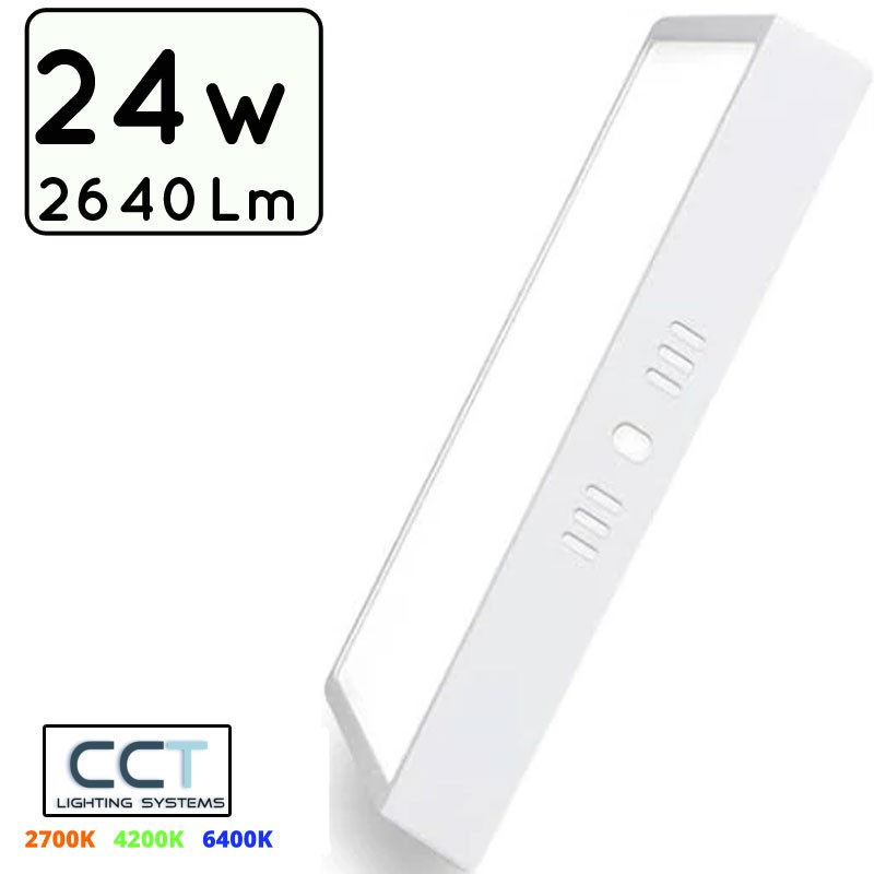Plafon LED Cuadrado de 24W con CCT ajustable (3000K-4000K-6000K) Φ285mmX31mm, rendimiento de hasta 2640 lúmenes, diseño orientable, fabricado en PC/ABS. Perfecto para iluminación versátil y eficiente
